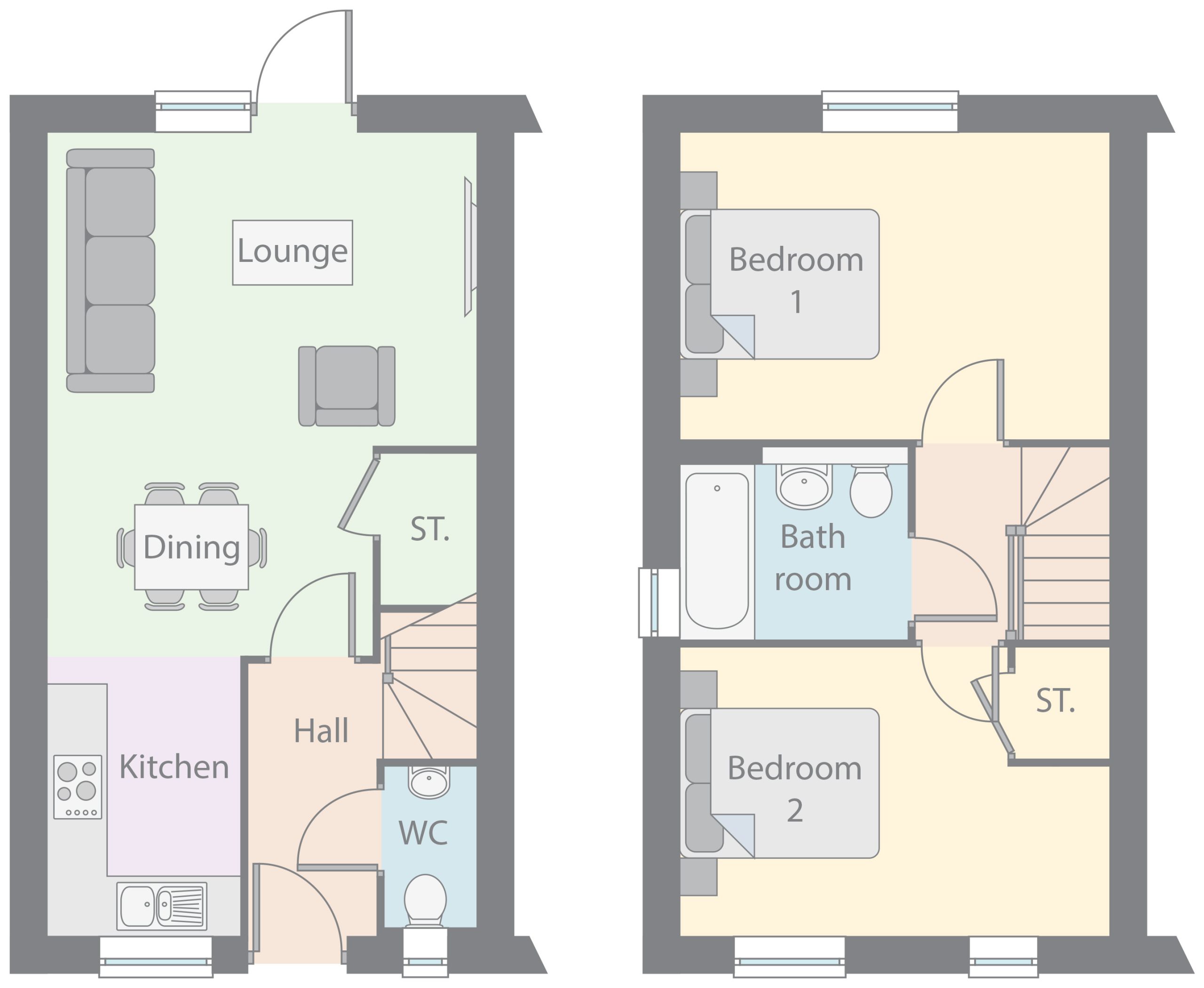 The Acorn is a superb new home which is designed to suit first time buyers and downsizers. It features a modern, open-plan kitchen, dining and lounge area with a patio door opening to the rear garden, making the space perfect for entertaining. A WC and storage completes the downstairs.